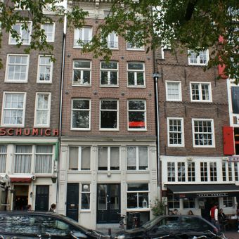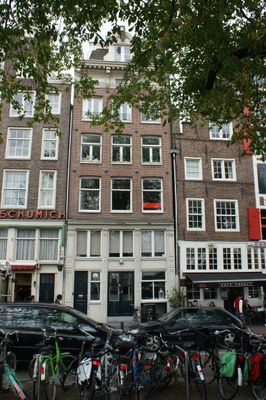 Zelfstandig achterhuis met houten pui, vormt het achterste deel van Singel 14