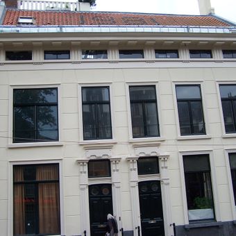 Huis met gepleisterde gevel onder versierde rechte lijst