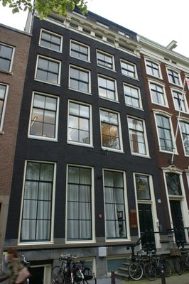 Huis achter gezamenlijke gevel met het nr 217 onder verhoogde lijst met consoles empire-deur