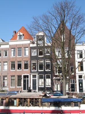 Pand met halsgevel met gedeelde vleugelstukken en ornament in de afdekking, Rijksmonument op Achtergracht 31A