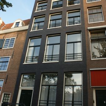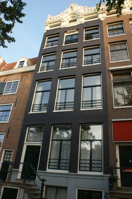 Pand met gevel met gebeeldhouwde kelderpui en stoep, drie louis