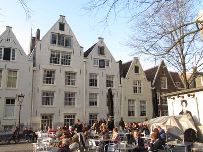 Huis van L-vormige plattegrond oude roedenverdeling aan het spui en overgebouwde puntgevel aan de gedempte begijnenslo