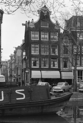 Hoekhuis met klokgevel en gevelsteen in de zijgevel, Rijksmonument op Kloveniersburgwal 28