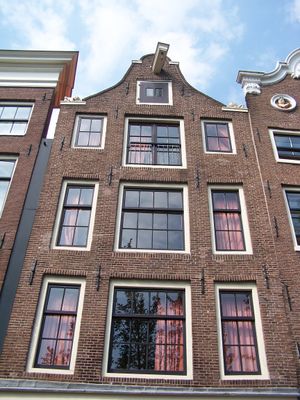 Huis met gevel onder latere ingezwenkte hals met rollagen