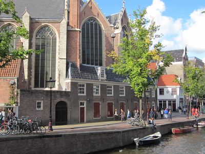 Tegen de oude kerk aangebouwd dwarshuis, Rijksmonument op Oudezijds Voorburgwal 74