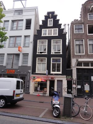 Pand met trapgevel met vleugelstukjes in de top, Rijksmonument op Spuistraat 50