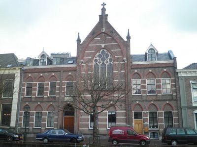 Pand dat met het pand oudegracht 210 gedekt wordt door een dwars schilddak