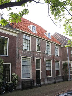 Pand met verdieping en hoog, dwars schilddak, building in Delft, Netherlands