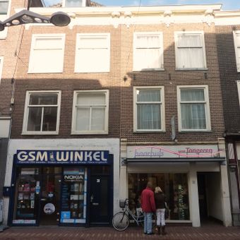 Pand met bakstenen gevel met rechte kroonlijst, building in Leiden, Netherlands