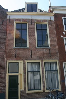Pand met verdieping, zolderverdieping en pannen schilddak. Voorgevel gewijzigd in de 18e en 19e eeuw