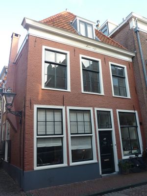 Pand met gevel met rechte kroonlijst, Rijksmonument op Langebrug 46, Leiden