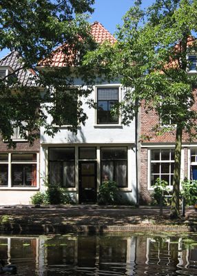 Gerend pandje op de hoek van de Vlouw. Gepleisterde gevels; aan de voorzijde een topgevel met ingezwenkte zijkanten