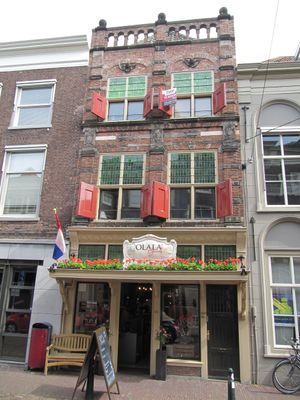 Pand met rijk versierde renaissance trapgevel, gedateerd in cartouche boven het rechter venster van de eerste verdieping