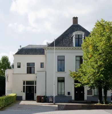 Groot huis met witgepleisterde lijstgevel, Rijksmonument op Haagweg 389