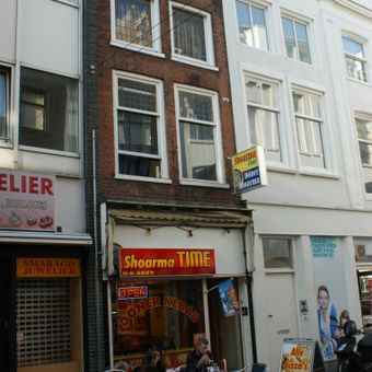 Twee panden, waarvan de parterres tot een winkelruimte zijn samengetrokken. Het linker heeft een lijstgevel en het rechter een dubbel verkropte lijst uit dezelfde tijd