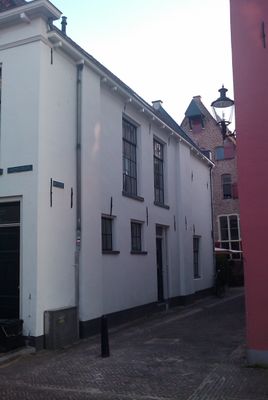 Huis met thans op niet zeer fraaie wijze tot lijstgevel getransformeerd front, in jaarankers gedateerd 1621