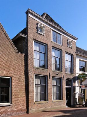 Dubbel pand met gevel met rechte kroonlijst en drie gevelstenen