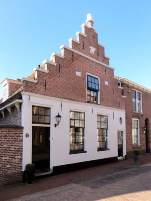 Pand met gepleisterde topgevel met in- en uitgezwenkte zijkanten