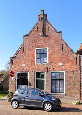 Dubbel pand met gevel met rechte kroonlijst en drie gevelstenen