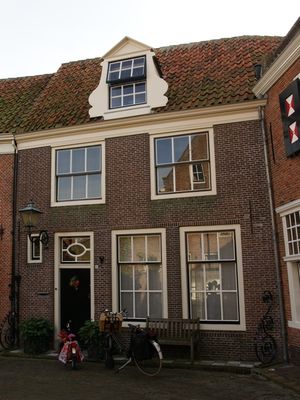 Pand met eenvoudige laat 18e-eeuwse gevel met rechte kroonlijst en dwarskap. Zijgevel aan de Dijkstraat en achterhuis