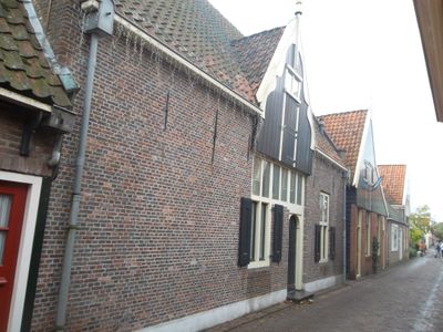Huis met gepleisterde voorgevel en fraaie achtertopgevel boven een gepleisterde onderbouw