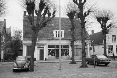 Huis met eeuwse tweeling-trapgevel, waarin een met een masker versierd jonisch kraagsteentje en tien eenvoudige sierankers, venster vergroot en rechts beganegronds een etalagevenster uitgebroken
