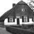 Boerderij, met omlopend rieten dak en links een opkamer. Deur getoogd en gesneden kalf