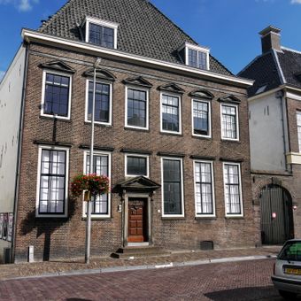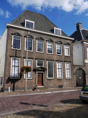 Statig huis rechts en links drie ramen breed met rechte kroonlijst