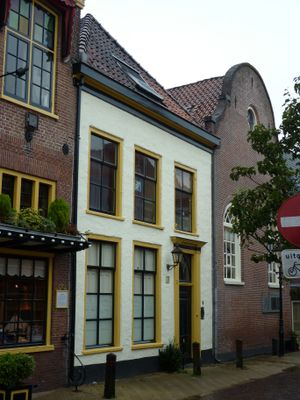 Pand met verdieping, hoog dak en gepleisterde gevel