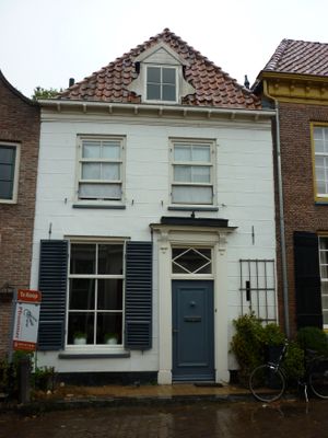 Herenhuis onder hoog zadeldak, waarin twee dakvensters met fronton