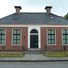 Pand onder breed schilddak met halfrond omlijste ingang en dienstingang in zijgevel