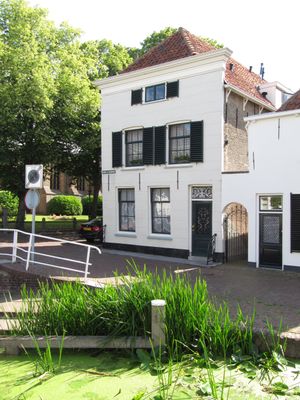 Huis met lijstgevel, waarin oude kozijnen en oorspronkelijke deur