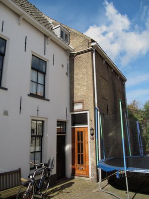 Huis met lijstgevel, waarin oude kozijnen en oorspronkelijke deur