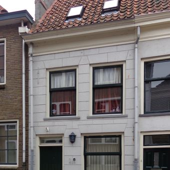 Hoekpand met gepleisterde gevels en muurankers (een geheel vormend met Boven Nieuwstraat 27)