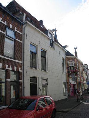Hoekpand met gepleisterde gevels en restant van trapgevel aan achterzijde, Rijksmonument op Boven Nieuwstraat 27