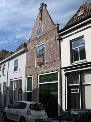Pand met geverfde rechte gevel en eenvoudige winkelpui
