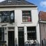 Hoekpand met gepleisterde lijstgevels met smalle gevel aan de Veenestraat en zijgevel aan de Burgwal onder langgerekt schilddak