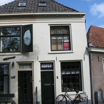 Gedeelte van een pand met gepleisterde rechte gevel, Rijksmonument op Burgwal 3