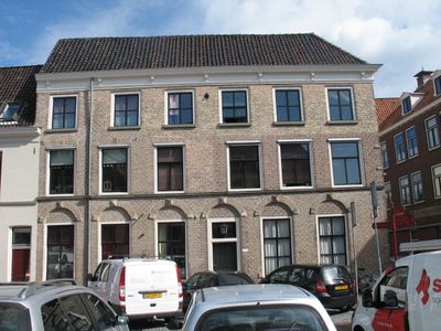 Pand met gepleisterde rechte gevel, dat een geheel uitmaakt met Burgwal 86