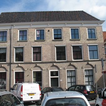 Gepleisterd pand onder dwars zadeldak samen met de nrs. 8-10 en 12