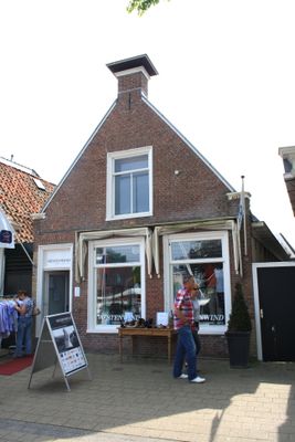 Eenvoudig pand onder zadeldak met voorschild gedekt door Friese pannen waarboven schoorsteen