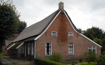 Kleine boerderij met woondeel met topgevel met topschoorsteen