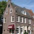 Hoog huis, gepleisterd in klokgevel, uitlopend zadeldak, Rijksmonument op Marktstraat 15