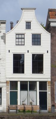 Panden, op de hoek van Aelbrechtskolk en Achterwater. Eenvoudige lijstgevels; schilddak