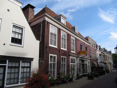 Fors pand, begane grond en verdieping, met rechte gevel aan de straat, Rijksmonument op Herenstraat 35