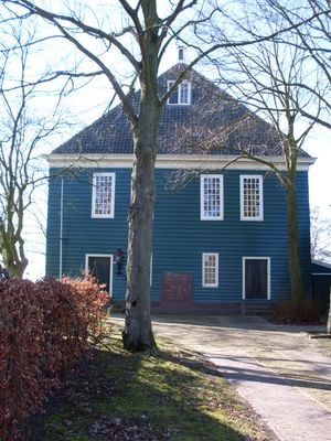 Houten pand onder wolfdak naast de doopsgezinde vermaning