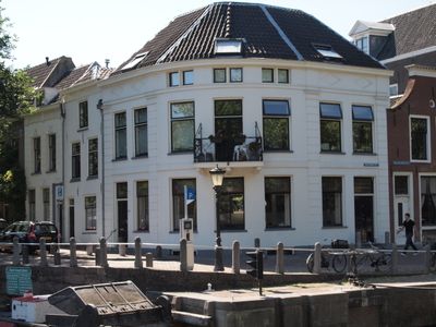 Pand met gebogen voorgevel uit de eerste helft van de 19e eeuw, bestaande uit twee bouwlagen met mansardekap, Rijksmonument op Weerdsingel wz 66