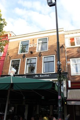 Pand met lijstgevel met goede xviii winkelpui en uithangbord 1747