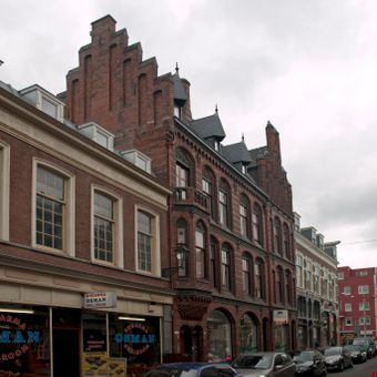 Woonwinkelpand in op de Noord-Duitse baksteengotiek geïnspireerde neogotische stijl
