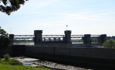 De structuur combineert overstromingscontrolemechanismen met transportfuncties, ondersteunend aan zowel waterregulatie als commerciële scheepvaart.